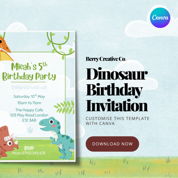 Kids Dinosaur Birthday Party Invitation - Canva Template